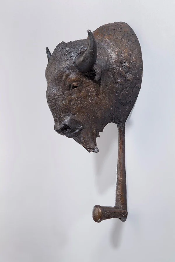 American Icon beautifully portrays the strength and pride of the American West. The buffalo head wall hanging is the fourth piece in Greg's hat rack series.