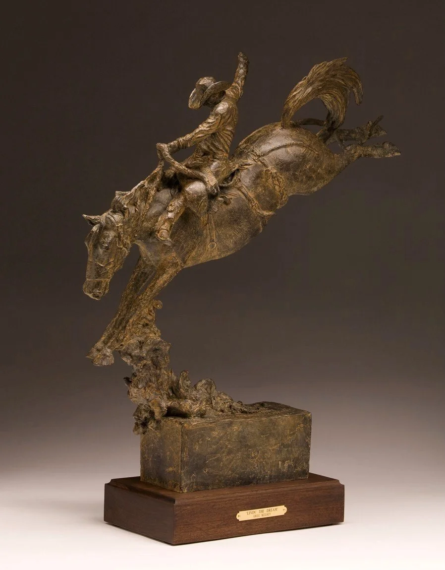 This sculpture depicts the reigning World Champion Saddle Bronc rider, Jesse Kruse.