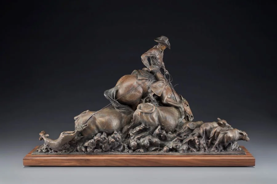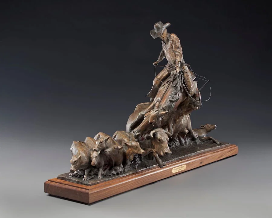 Slide 1 Slide 1 (current slide) Slide 2 Slide 2 (current slide) Slide 3 Slide 3 (current slide) Slide 4 Slide 4 (current slide) "Momma’s Not Bluffin’" 20”H x 11”D x 35”LBronze, Ed. 25Cyrus Dallin Best Sculpture Award - 2016 Quest for the West Art Show & Sale Contact to Purchase